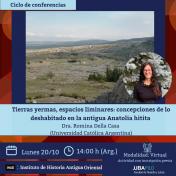 El lunes 20 de octubre a las 14:00 h (Arg.), la Dra. Romina Della Casa ofrecerá la conferencia virtual "Tierras yermas, espacios liminares: concepciones de lo deshabitado en la antigua Anatolia hitita".